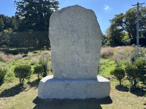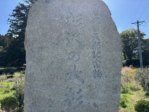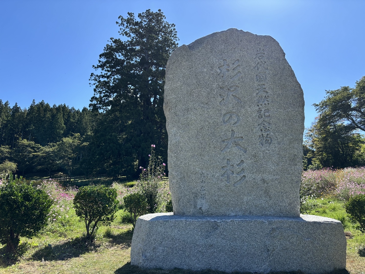 私の地元である二本松市旧岩代地区と田村市の境目にあります国指定天然記念物「杉沢の大杉」。樹齢1000年・樹高50m・幹周12.8mの巨大な杉の木です。この公園にあります石製看板も負けじと巨大。高さおおよそ4m。