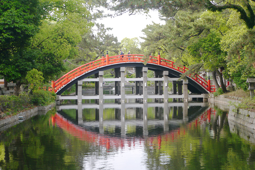大阪にある住吉大社は、全国約2300社ある住吉神社の総本山。近くに路面電車が走る下町情緒を残す地域にあり、「すみよっさん」と呼ばれて親しまれています。3万坪という広さをもつ境内には、「住吉造」という特殊な様式でつくられた4棟の本殿のほか、27の摂社や末社、名所旧跡も多数。授与品もバラエティに富み、テーマパークのような?楽しさがあります。